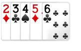 STRAIGHT : kombinasi kartu ini sama dengan STRAIGHT FLUSH, bedanya kalau STRAIGHT tidak memandang bunga, bunganya boleh bebas , misal : 4 â™  - 5♥ - 6♦ - 7 ♣ - 8♦ atau 10♥ - J ♣ - Q â™  - K♦ â€“ As ♣